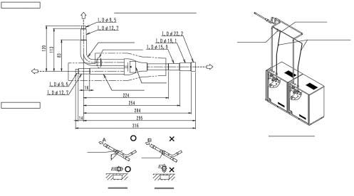 Consulte el “Manual de instalación” o los “Datos técnicos” para obtener detalles sobre la tubería de conexión necesaria.